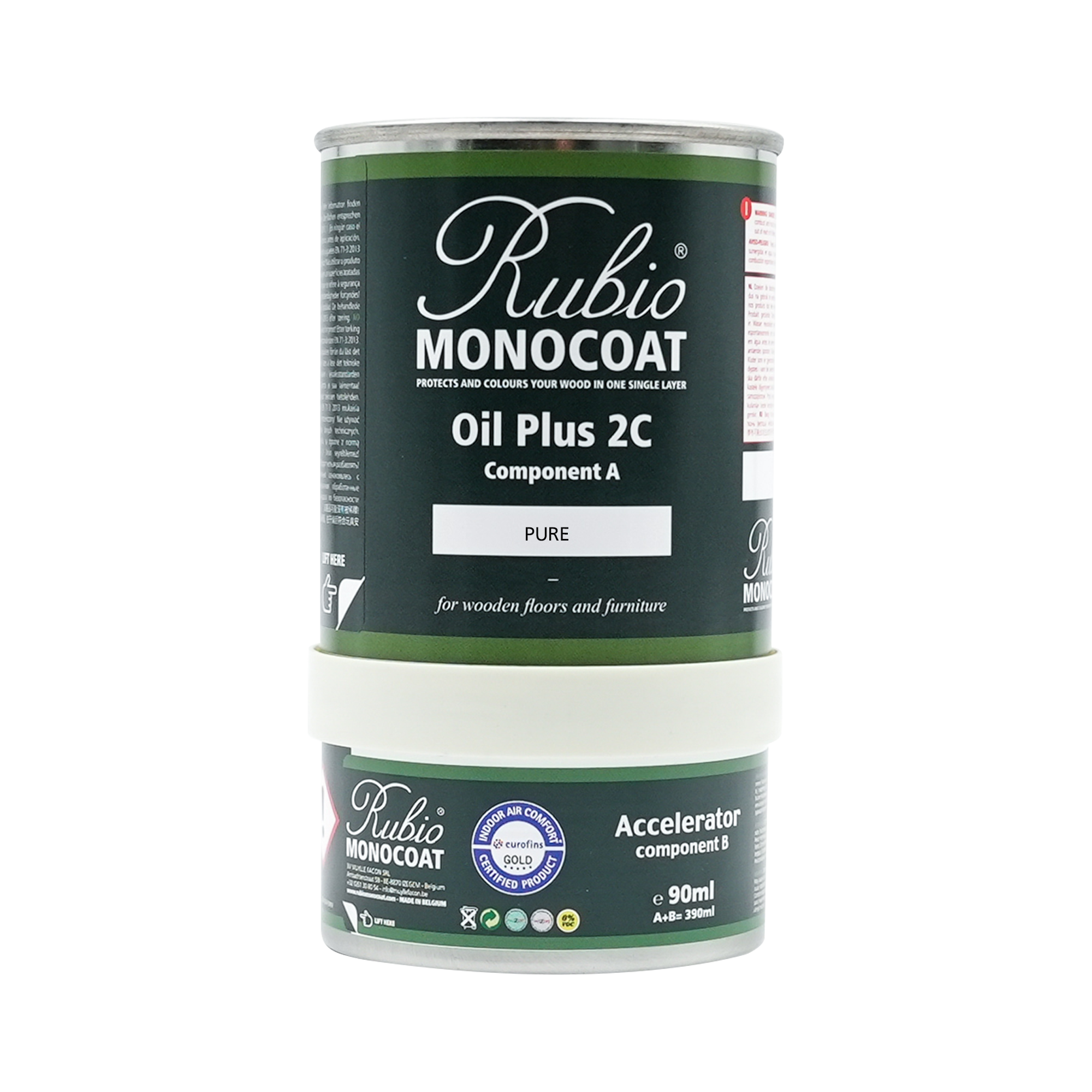 Rubio® Monocoat Oil Plus 2C Pure to produkt nowej generacji, który barwi i chroni drewno przy nałożeniu jednej warstwy. Połączenie składnika A z komponentem B zapewnia szybkie schnięcie i wysoką odporność.